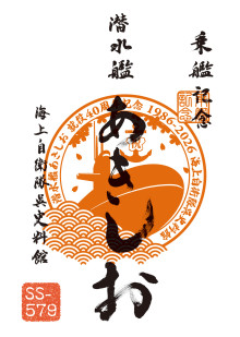 海上自衛隊呉史料館(てつのくじら館、呉市宝町)で現在、展示潜水艦「あきしお」の就役40周年を記念した「護守印スタンプ」イベントを開催している。