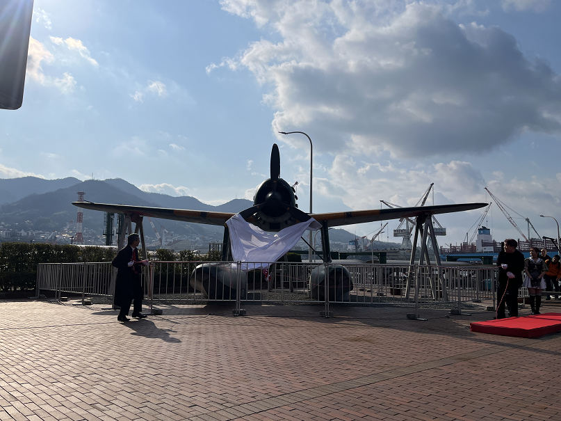 広島県呉市の大和波止場(宝町)で旧日本海軍の水上偵察機「瑞雲」(1分の1原寸大)の一般公開が1月27日から始まった。