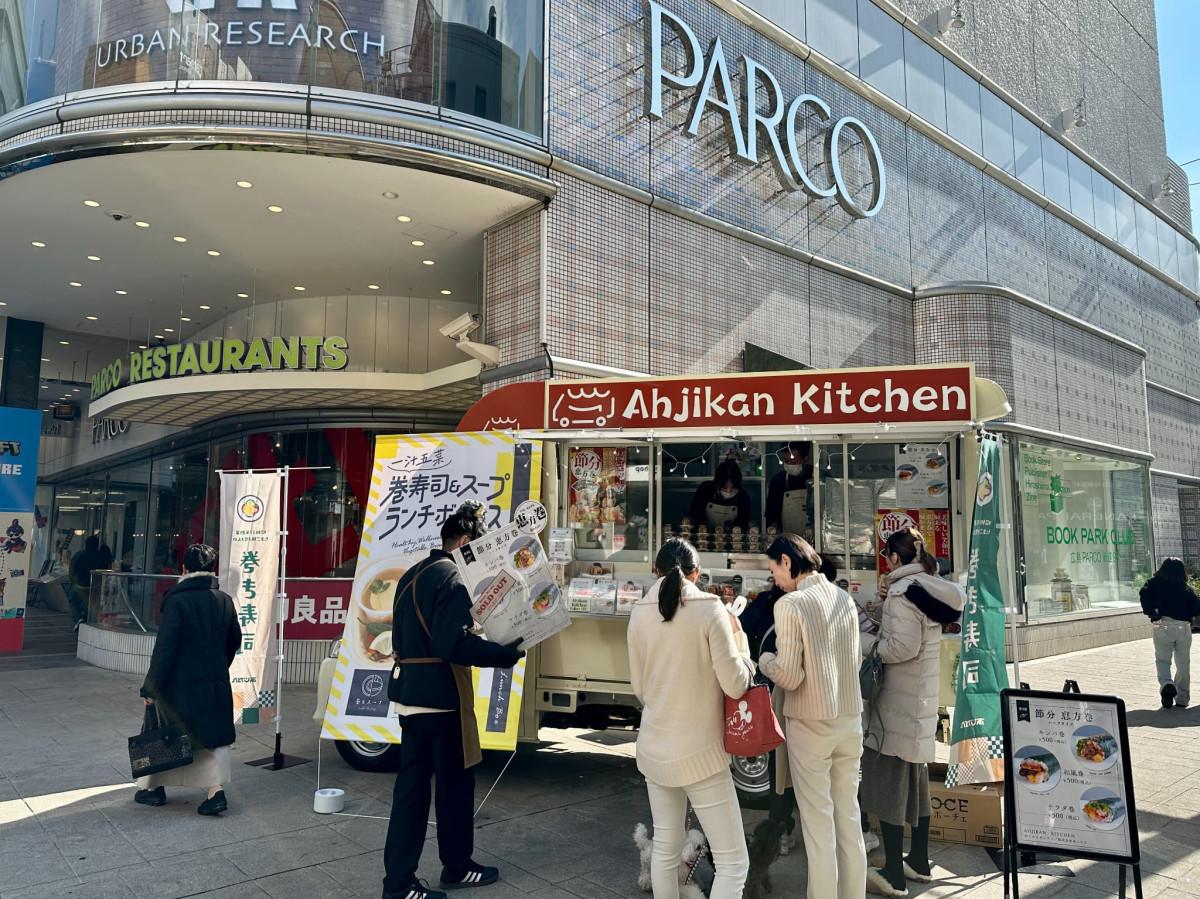 節分に合わせ、巻きずし具材メーカーのあじかん(広島市西区商工センター7)が、広島パルコ本館前(中区本通)で恵方巻のキッチンカー販売を行っている。