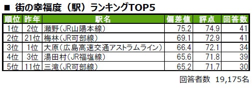 ※「街の幸福度」は、2021~2025年の5年分の回答を累積して集計しています。各自治体・駅の累計人数が規定(自治体50名以上、駅30名以上)に満たない場合は、2020年、さらに必要に応じて2019年の回答も加えています。
