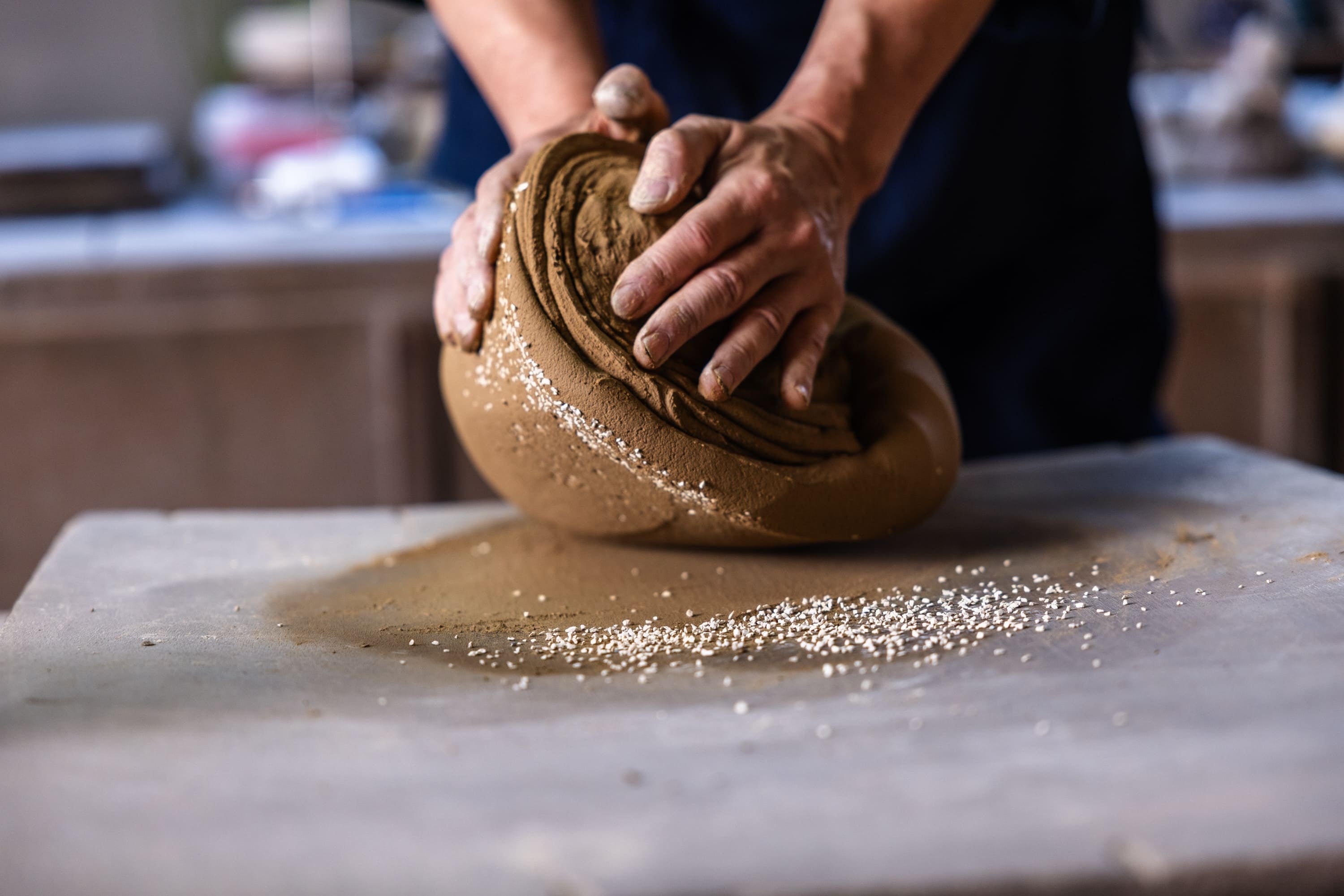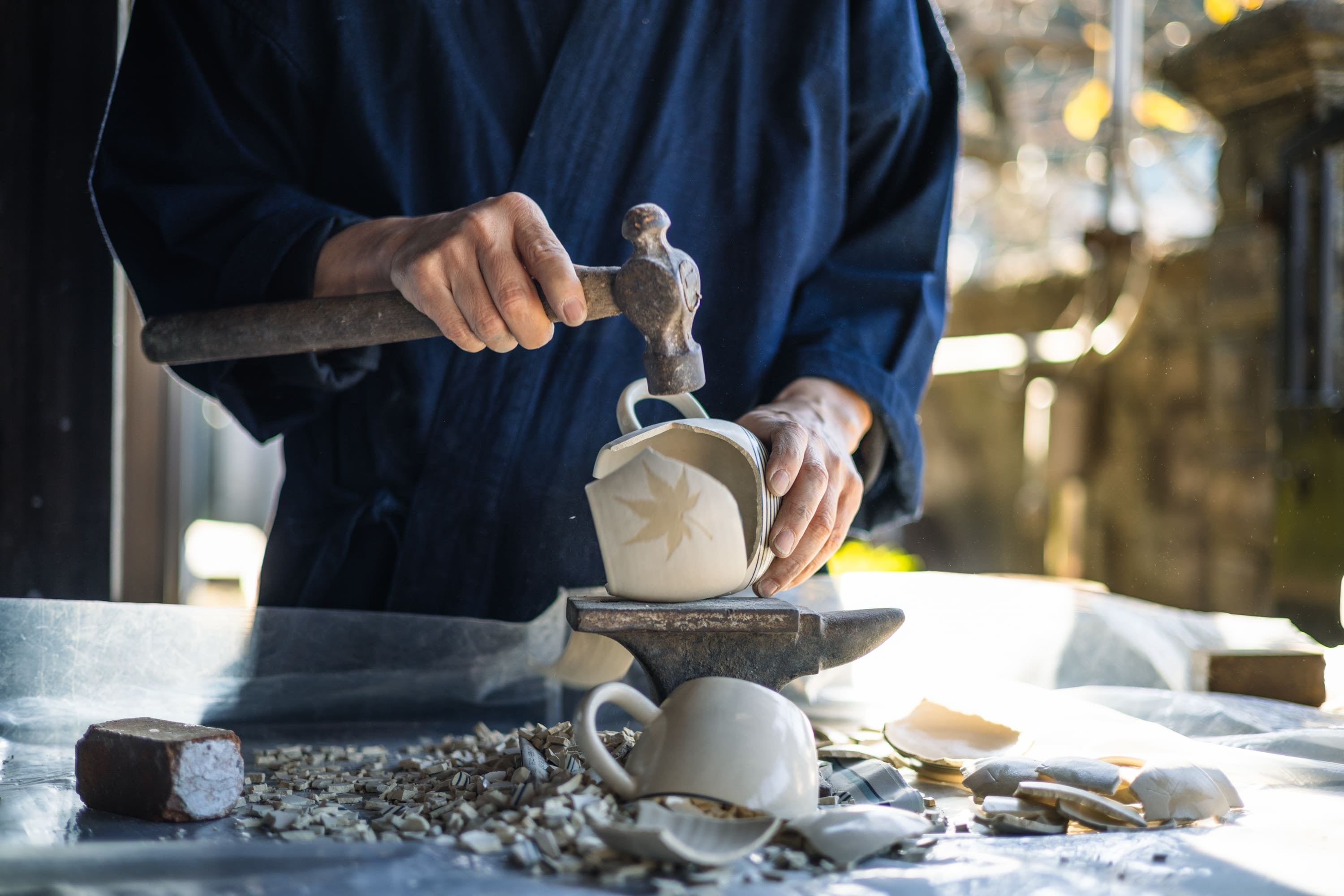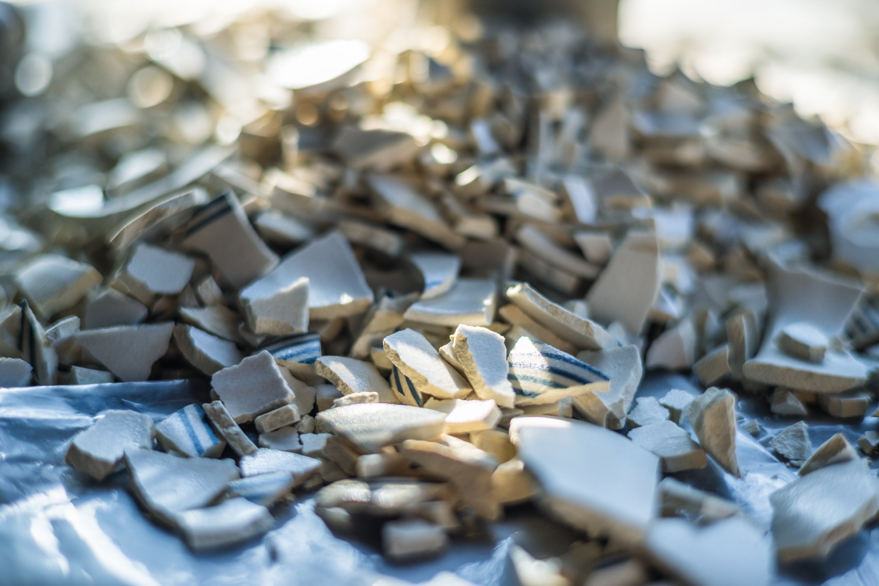 割れや欠けによりお届けできなかった焼き物を、粉砕し、磨き、新たな素材としてよみがえらせる。一度焼かれた焼き物は、もう二度と土には還ることができない。だからこそ、壊れたものではなく「終わらないもの」として、再び誰かの日常へと綴り直していく。