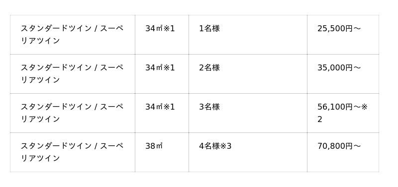 ※1 スーペリアツインは35平方メートル でご用意します。