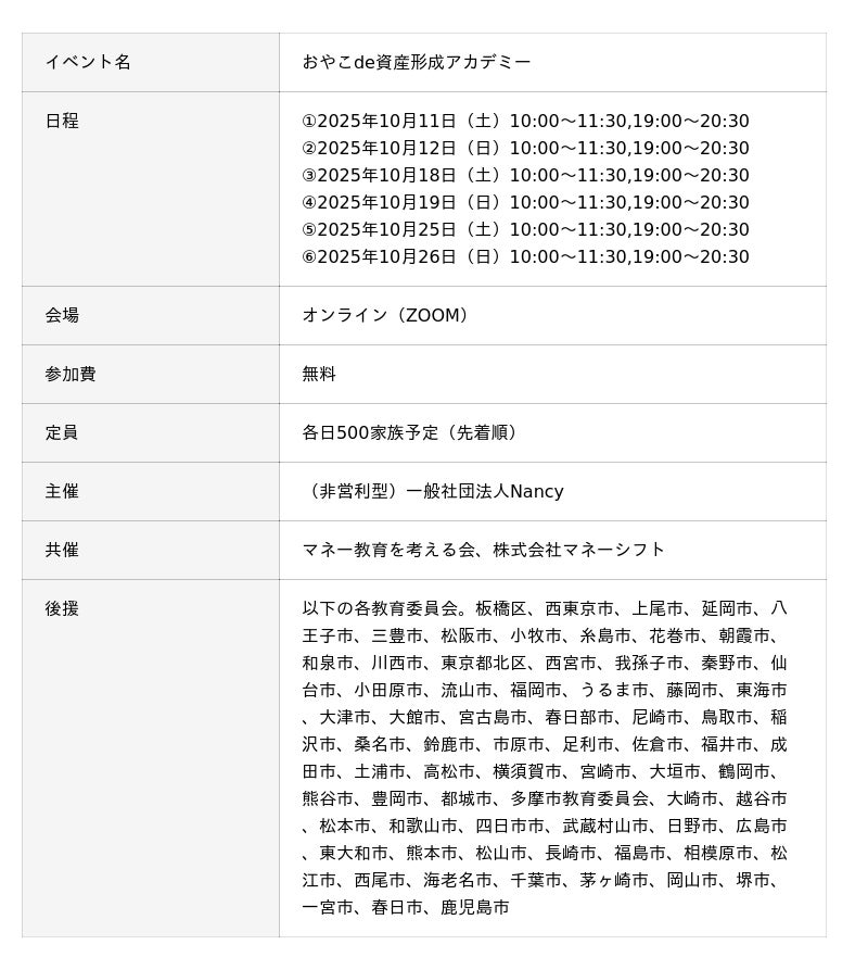 そんなオンラインイベント「おやこde資産形成アカデミー」が、下記の日程で開催されます。