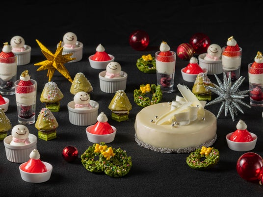 スノーマンやリース、ツリーをモチーフにした愛らしいスイーツが並び、心弾むクリスマスの世界へと誘います。サンタ帽をイメージした「ストロベリーカシス」は、甘酸っぱい苺とカシスのハーモニーが広がる華やかな味わい。大人も子どもも笑顔になるスイーツです。ひと足早いクリスマス気分を、シェラトングランドホテル広島でお楽しみください。