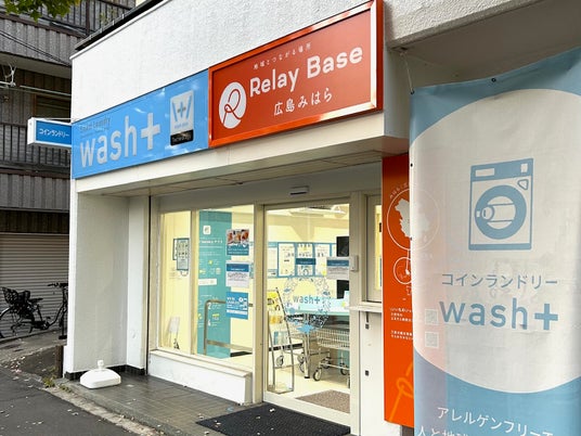 wash-plusでは、三原市、株式会社空・道・港、三原商工会議所のご協力をいただきながら、地方自治体とコインランドリーという、認知度・ブランディングの全く違うもののかけ合わせで、双方の認知度向上と売上増加に効果をもたらすことを目指し「リレーベース」を運営しています。