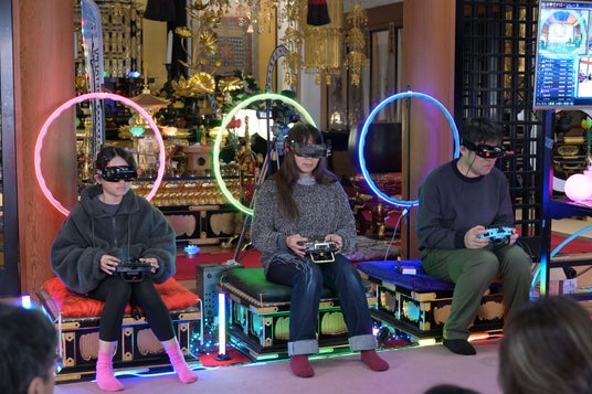 2. 「入我我入」の没入体験。光の帯が本堂を駆け抜ける「マイクロドローンレース」