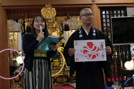 1. 厳粛な空間で行う、本堂内での「ドローンショー奉納」