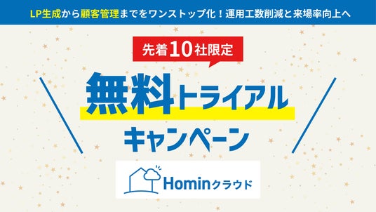 サービス開始にあたり、「Hominクラウド」をお試し導入いただける”無償トライアルキャンペーン”を実施しています。