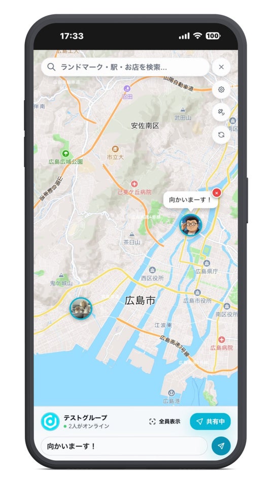 家族や友達とグループを作成し、現在地をリアルタイムで共有できます。