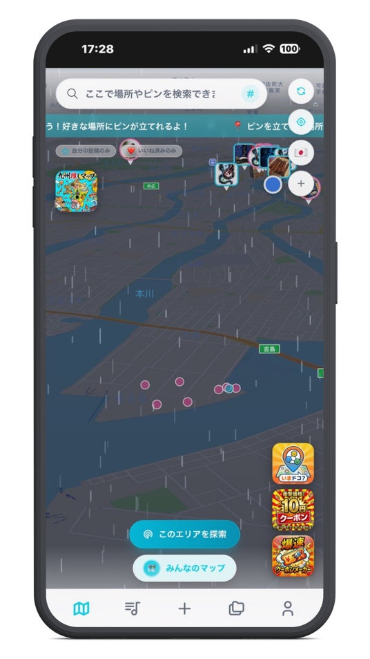 ユーザー登録(完全無料)をするとマップ上にピンや宝箱を投稿したり、クーポンを拾ったり楽しみが増えますので、是非ユーザー登録をしてお楽しみください。