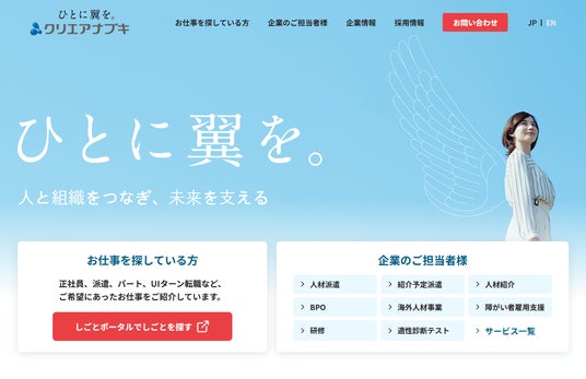 総合人材サービスの株式会社クリエアナブキ(本社:香川県高松市/代表取締役社長 楠戸 三則)は、2025年12月25日、コーポレートサイトの全面リニューアルを行いました。多彩なサービスで組織の課題解決を図る構成とし、求職者と企業双方の導線を分かりやすく整理した設計としました。
