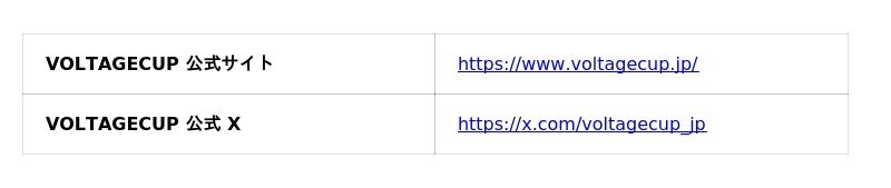 本イベントの詳細は、イベント公式ホームページおよびVOLTAGECUP公式Xアカウントをご確認ください。