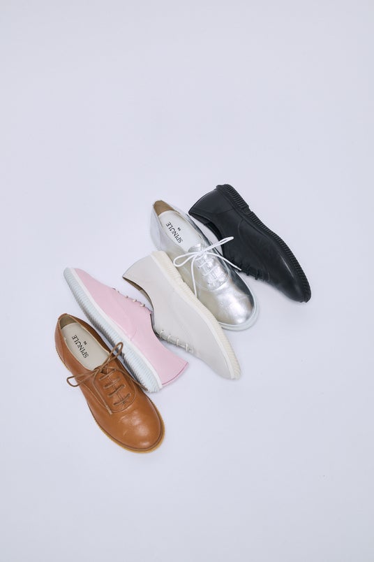 春は新生活のスタートや行事・式典の場など、TPOが求められる着こなしが多い季節です。今回、SPINGLEからそんな女性へ向けて発売するのが「SP-1833」です。元々男性用フォーマルシューズのデザインだった内羽根(紐を通す羽根の部分が内側に縫い付けられたデザイン)仕様のプレーントゥは、マニッシュなデザインのため春の新生活スタートや、行事・式典の場といったオケージョンスタイルはもちろん、春めくカジュアルスタイルにも幅広く合わせられます。足当りの柔らかいカンガルーレザーをアッパーに使用し、通常よりも広いワイズの木型を採用することで包み込むような履き心地を実現。アウトソールには6mmのウエッジヒールを採用することで接地面積が広く安定し、程良く厚底のためスタイルアップ効果も望めます。