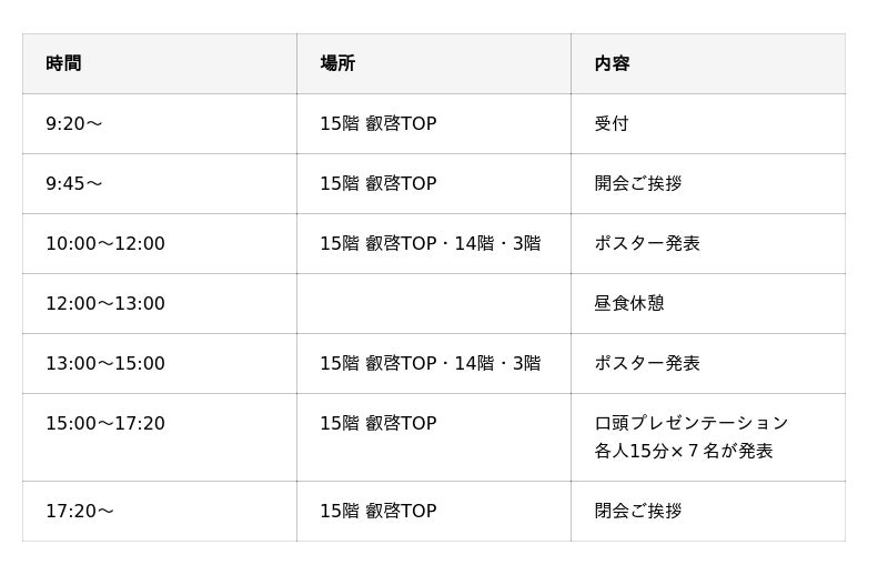 ※履修学生は、午前・午後に1回ずつ発表を行います。