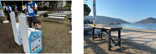 ・開催概要:広島県の主要産業である牡蠣養殖に起因する海洋ごみ(牡蠣養殖パイプ、発泡スチロールフロート)の現状を広く周知することを目的としています 。県民の皆様がこの問題を「自分事(ジブンゴト)」として捉えるきっかけを作り、清掃活動を通じて環境意識を高めていただくための取り組みです 。この2種のごみを入れるための回収BOXを製作、設置しました。海を楽しみにきた方にも拾う活動に参加してもらうための啓発にも繋げ、さらには、回収した牡蠣養殖パイプはアップサイクルし、県民の意識変革を促します。