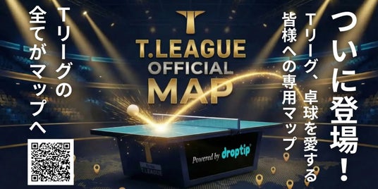一般社団法人Tリーグ(東京都新宿区、代表理事:坂井一也、以下「Tリーグ」)と、次世代マップサービスを展開するdroptip株式会社(本社:広島県広島市、代表取締役:林 聡、以下「droptip」)は、スペシャルサポーター契約を締結し、「Tリーグオフィシャルマップ」の提供を開始することを発表いたします。