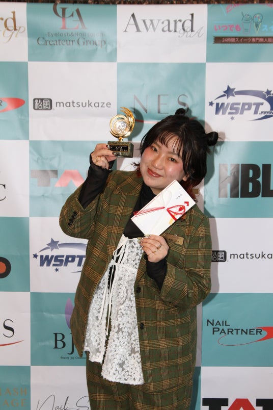 「2年連続でこのような栄えある賞をいただき、感謝の気持ちでいっぱいです。支えてくださるスタッフやお客様はもちろん、厳しくも愛のある指導で導いてくださった新垣さんには感謝してもしきれません。新垣さんのもとでネイリストとして働けることを誇りに思い、今後もさらなる高みを目指して精進してまいります。」